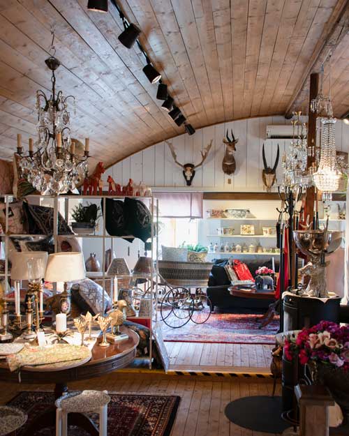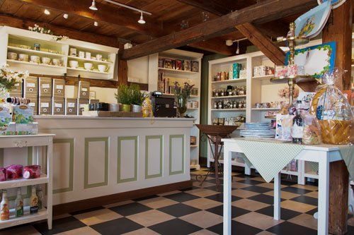 I den rymliga faluröda kvarnbutiken handlar du presenter, delikatesser, inredning, antikt, kristallkronor, vintage, finare leksaker, konst och mycket mer.